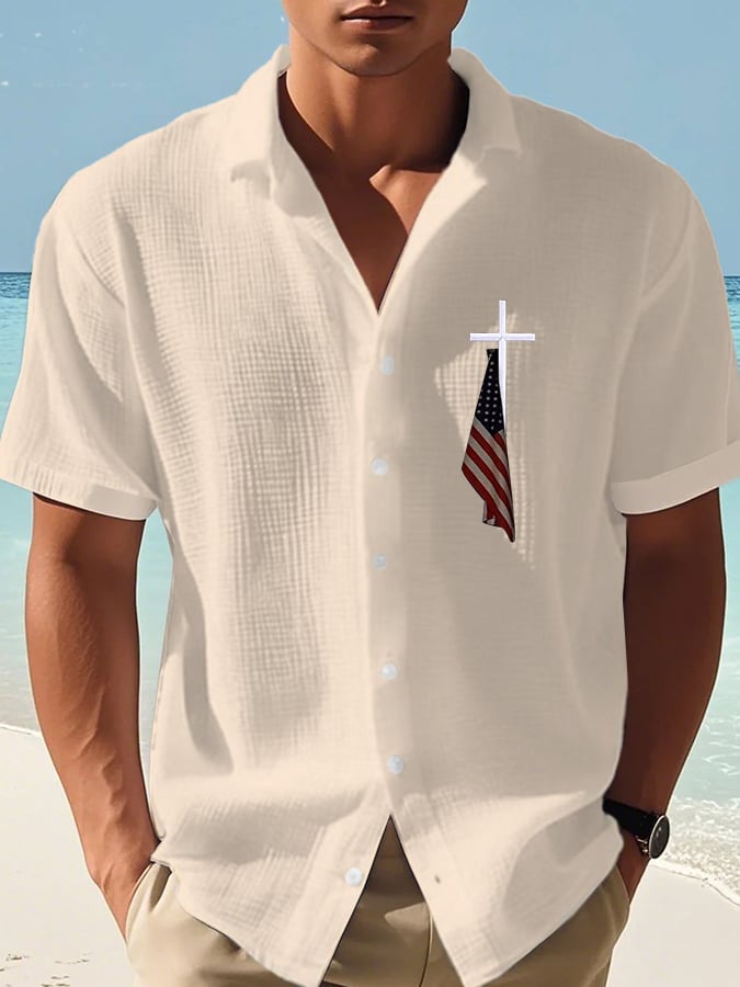 Men's American Flag Hawaiian Casual Printed Shirt