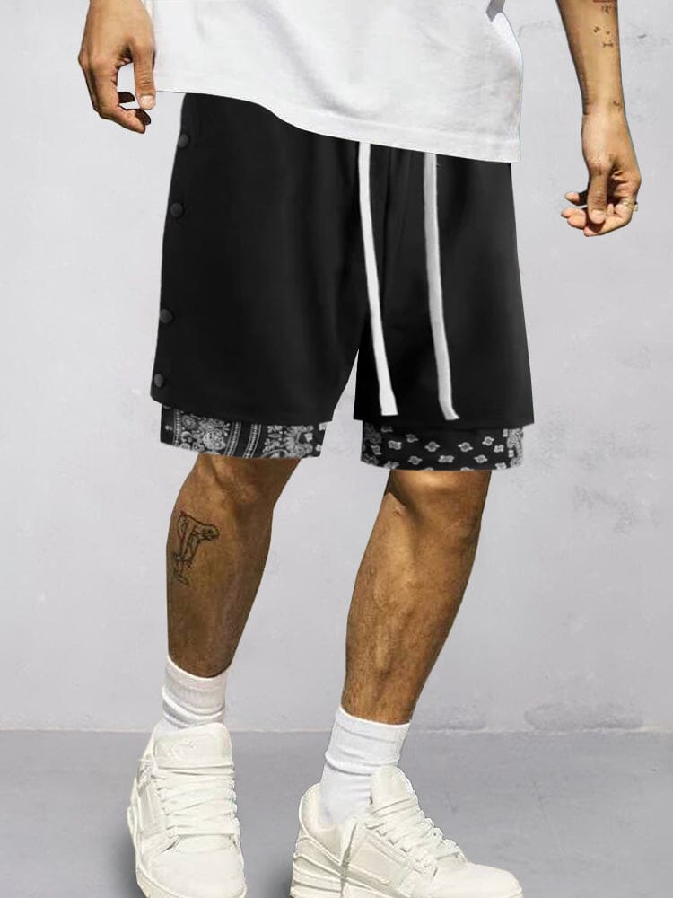 Men's Breathable Linen Embroidered Logo Loose Holiday Shorts