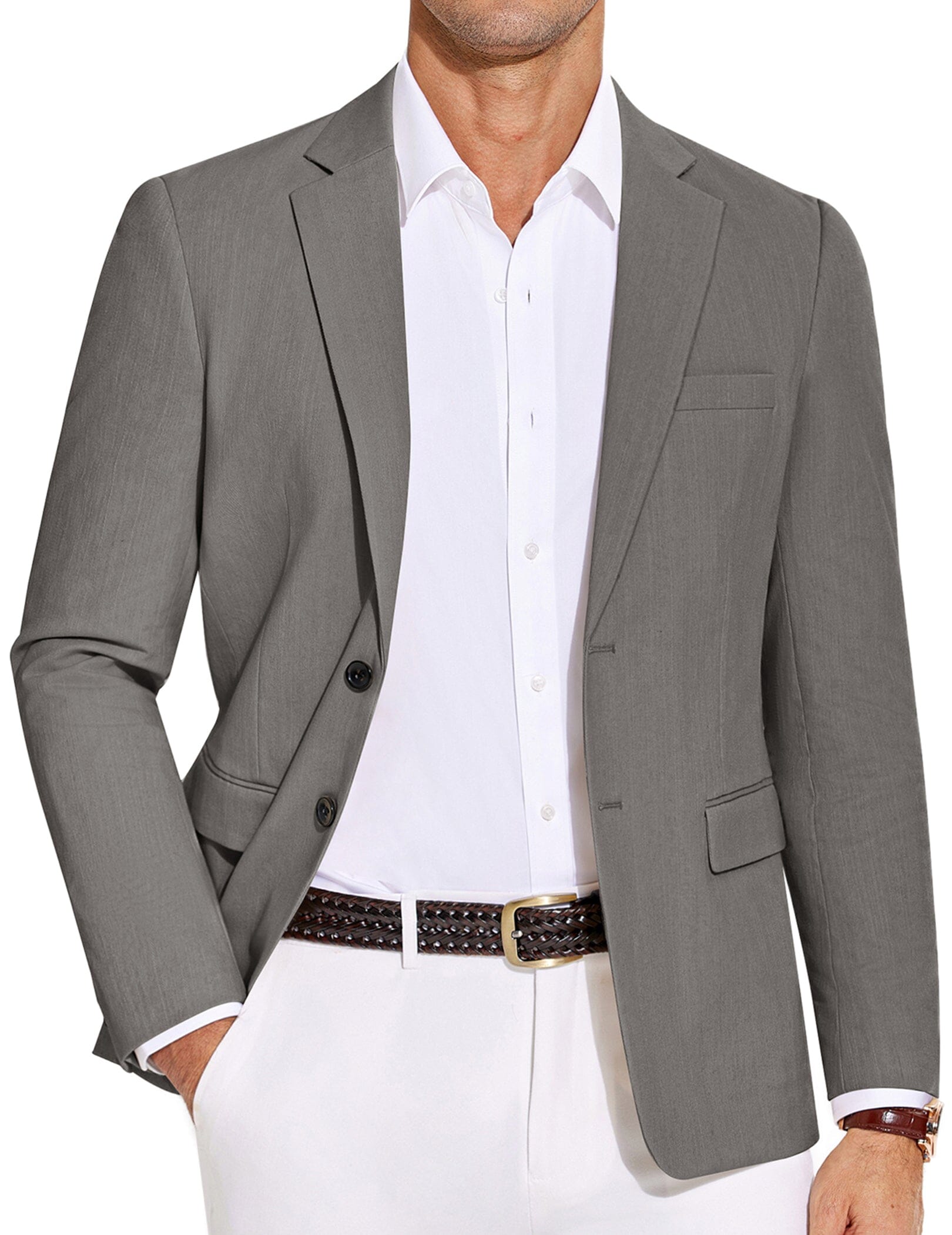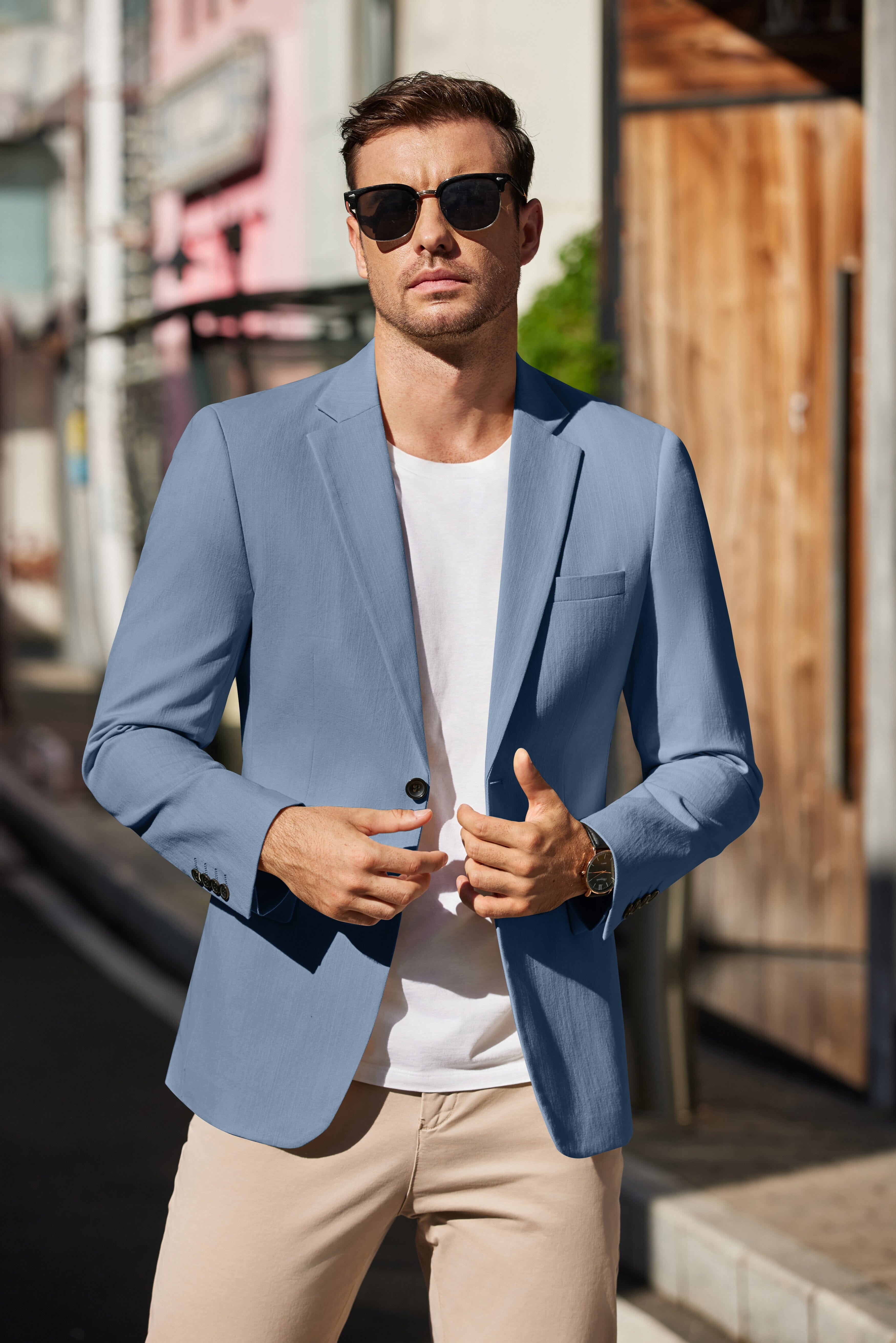 - Details: Notched lapel, 2 button closure, 2 real flap pockets and 1 chest pocket, 1 inner pockets, 4 buttons on the cuffs and light shoulder pad design offers a more stylish and decent look.