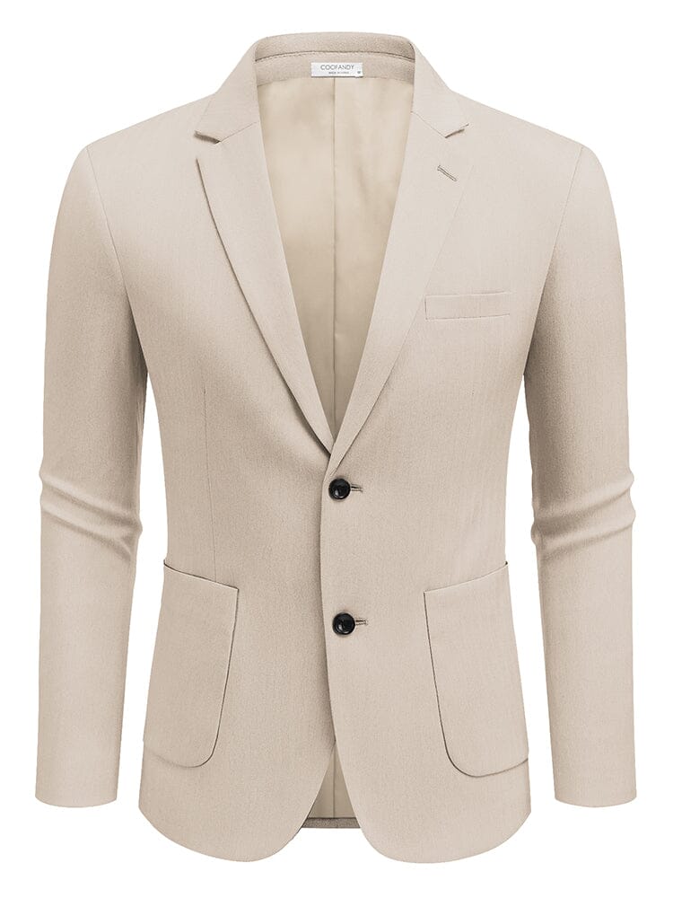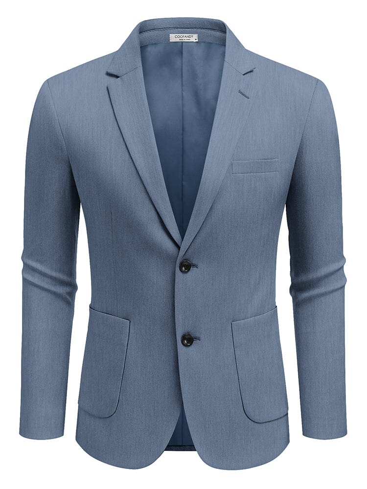 - Design: Two-button closure, lapel neck