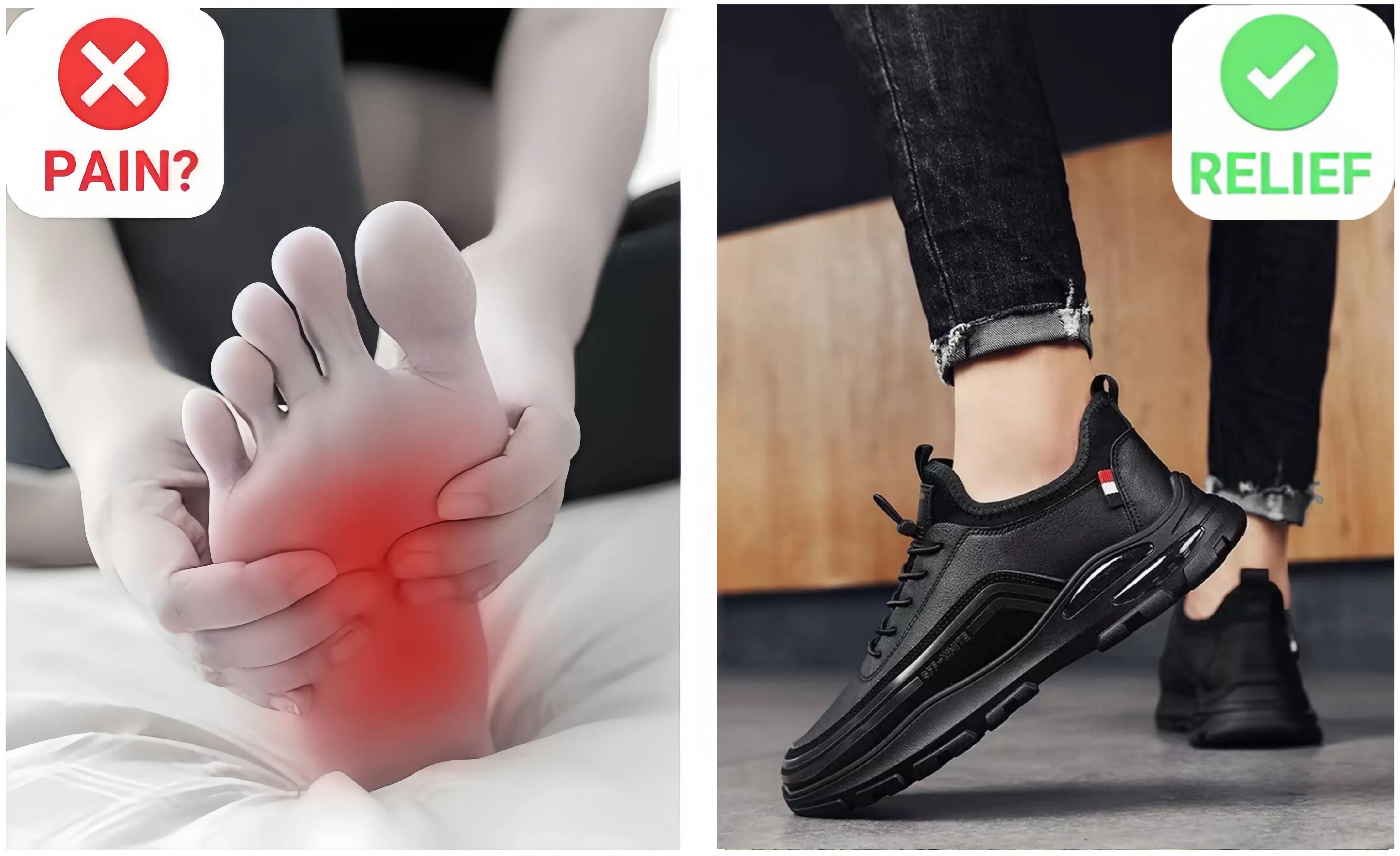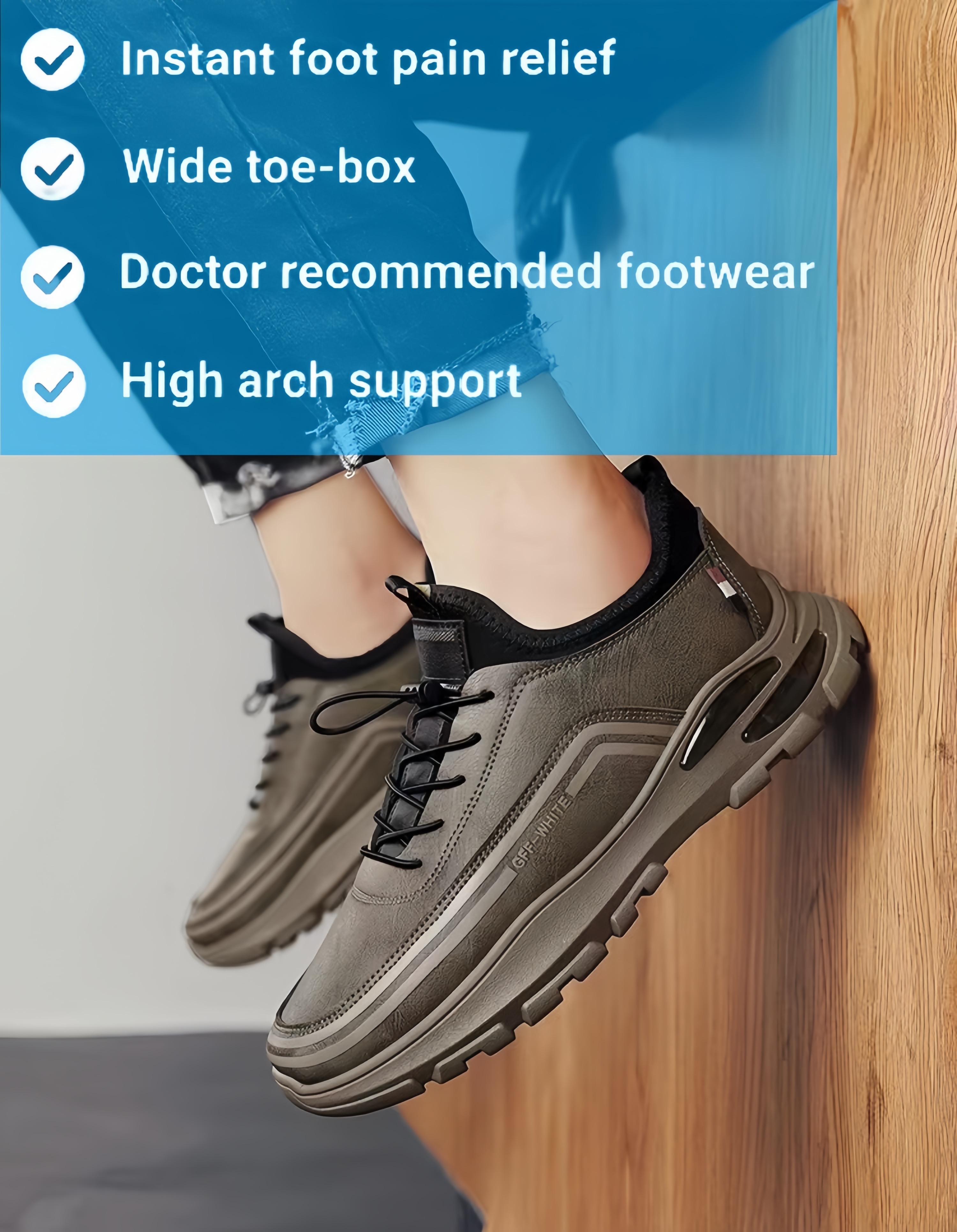 PLANTAR FASCIITIS? HEEL PAIN? FOOT PAIN? NEUROPATHY? With The ARCH SUPPORT INSOLE improves foot and leg alignment, enhances comfort, and helps ease stress and pain caused by flat feet (Pronation), bunions, arthritis, and diabetes.if you have foot pain but still want to have a pair of comfortable casual fashion shoes,just choose our GARB® , they will perfectly show the unique style for men.