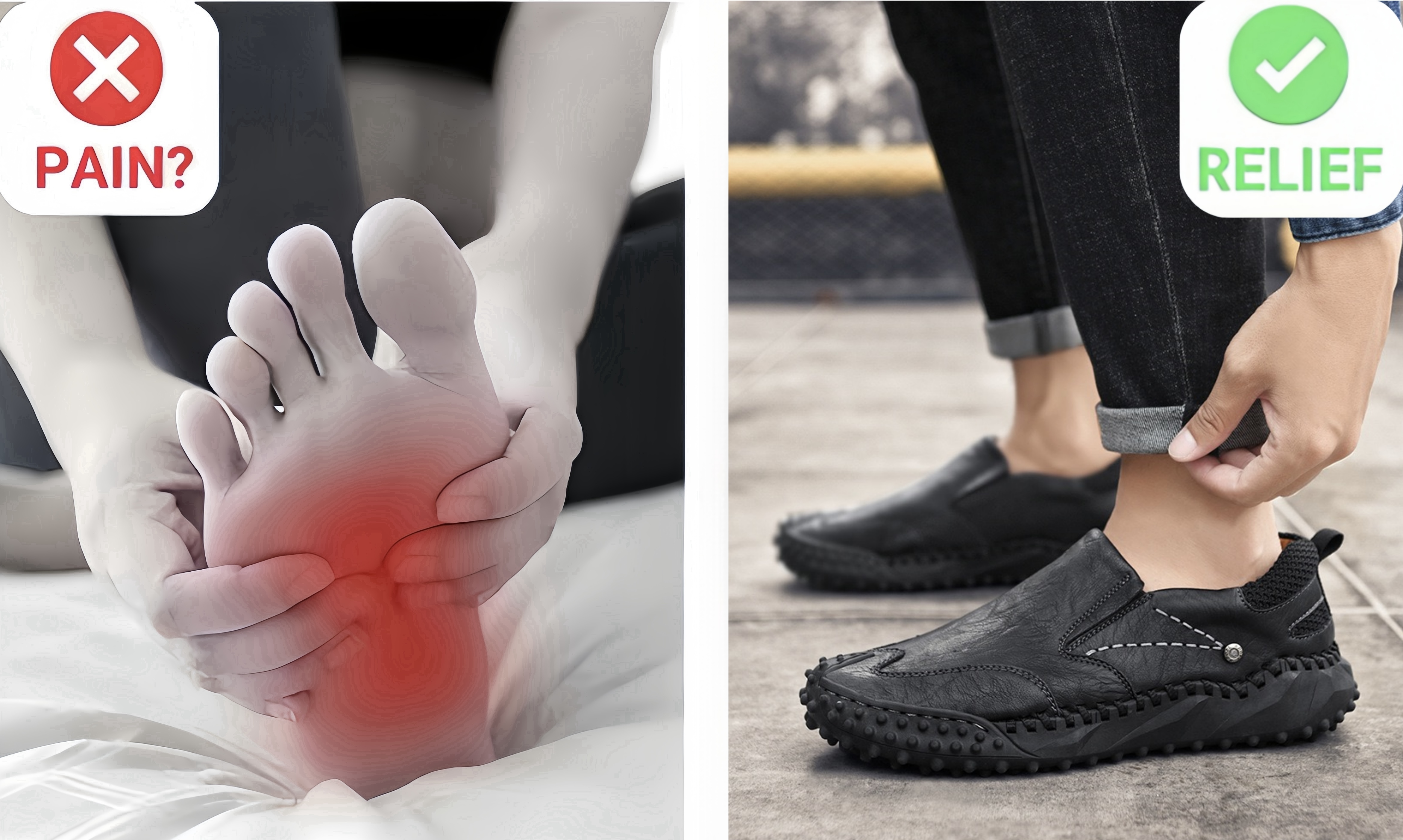 PLANTAR FASCIITIS? HEEL PAIN? FOOT PAIN? NEUROPATHY? With The ARCH SUPPORT INSOLE improves foot and leg alignment, enhances comfort, and helps ease stress and pain caused by flat feet (Pronation), bunions, arthritis, and diabetes.if you have foot pain but still want to have a pair of comfortable casual fashion shoes,just choose our GARB® , they will perfectly show the unique style for men.