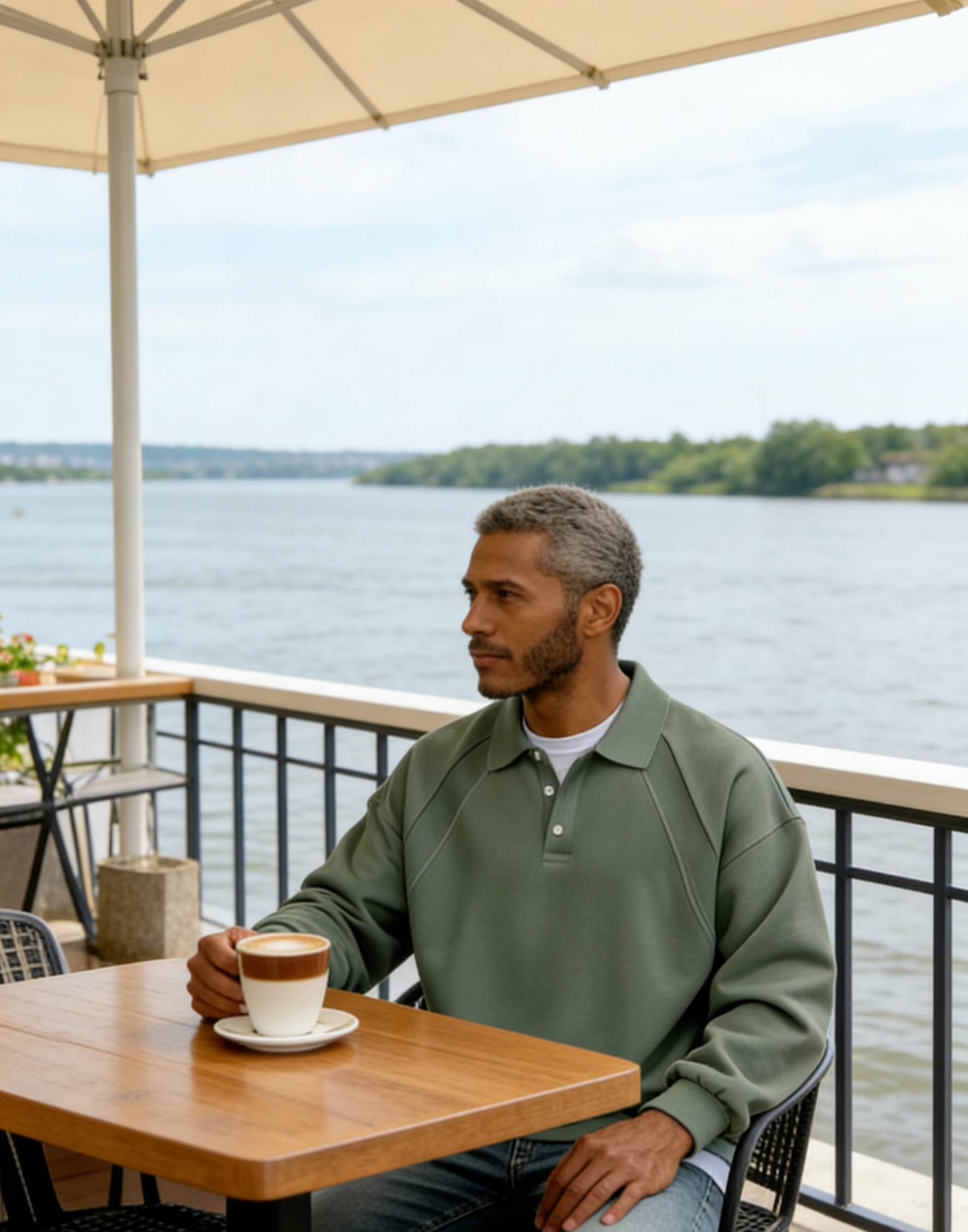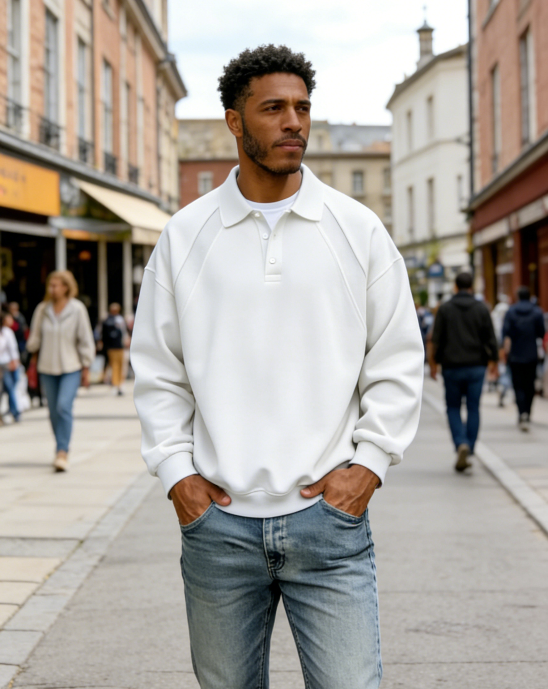 Built for seamless transition across daily settings, this hybrid polo sweatshirt moves effortlessly from office casual environments and weekday commutes to weekend outings, casual social gatherings and light outdoor activities. Embracing a minimalist aesthetic that aligns with current global men’s fashion trends, the design steers clear of excessive embellishments and loud patterns, instead focusing on refined craftsmanship and subtle detailing that elevates basic casual wear without compromising versatility. It targets the modern consumer seeking functional, long-lasting clothing that adapts to their schedule, rather than limited-use pieces confined to a single occasion.